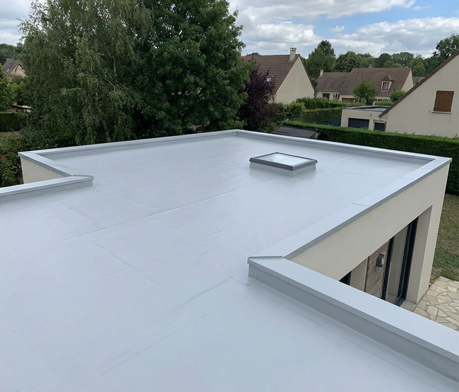 Étanchéité membrane PVC, acrotères zinc et création d'un puits de lumière.